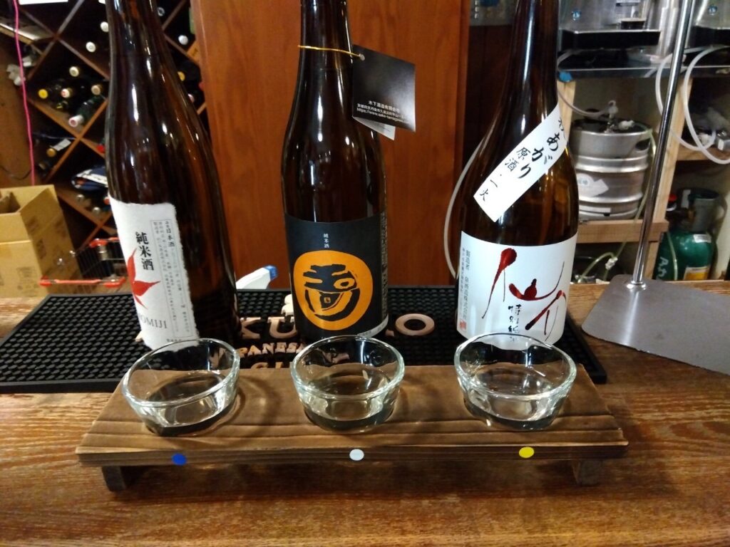 坂本屋酒店」では地酒の飲み比べもできます。