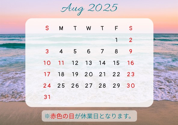 2025年:8月9日(土)~ 8月11日(月)・・・休業